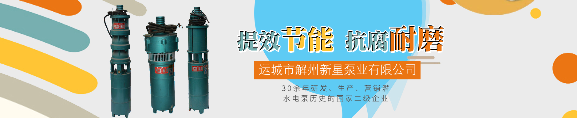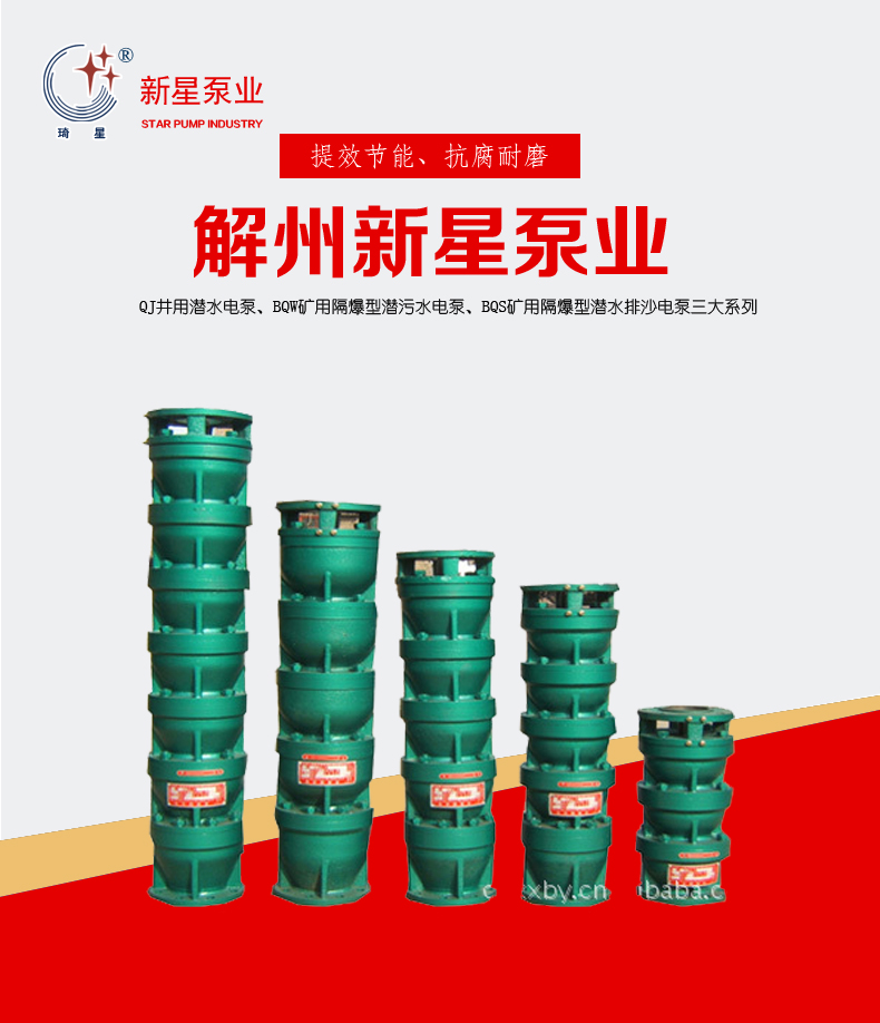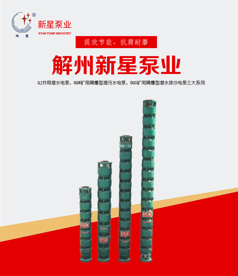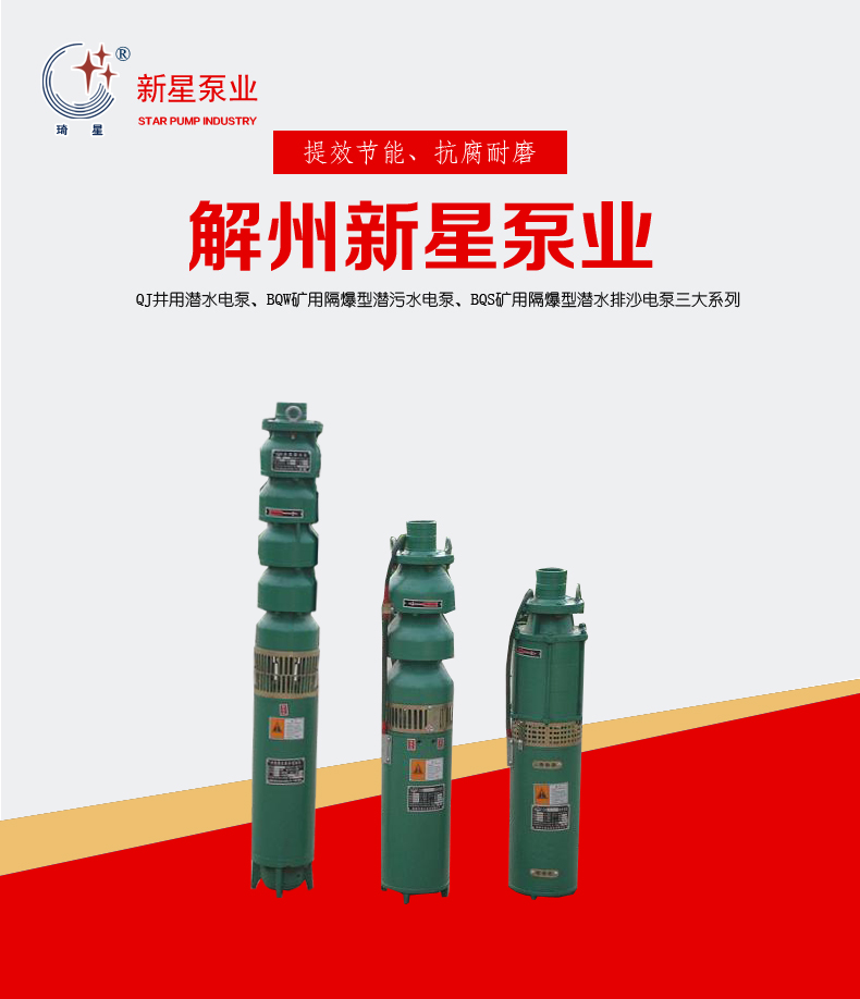 運城市解州新星泵業有限公司(原名:運城市解州新星潛水電泵廠)始創于1982年(已于2009年11月17日變更為運城市解州新星泵業有限公司),是經國家質量監督檢驗檢疫局頒發生產許可證的定點現代農機具加工制造企業,是融科研、開發、設計、制造于一體的潛水電泵生產基地成員之一。 本公司位于三晉之名鎮----解州鎮,地理位置優越,依山傍水,風景如詩如畫,是古今兵家必爭的咽喉要道,是晉、秦、豫三省交界的交通樞紐,人杰地靈,文化底蘊深厚,系古三國名圣關羽/公出生地。歷代名人柳宗元、現代畫家丁紹光均生長在這里。